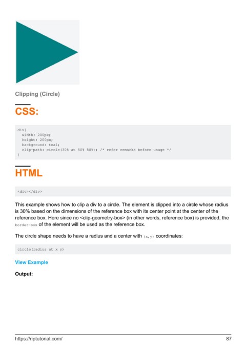 This example shows how to clip a div to a circle. The element is clipped into a circle whose radius