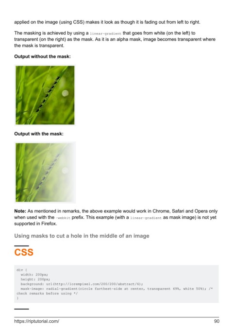 when used with the -webkit prefix. This example (with a linear-gradient as mask image) is not yet