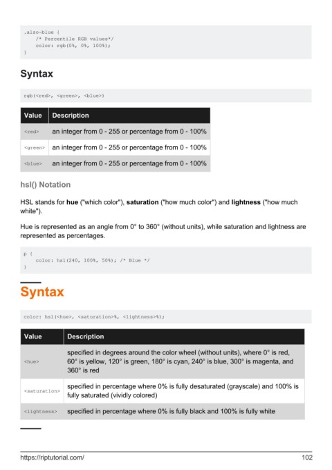 color: hsl(<hue>, <saturation>%, <lightness>%);