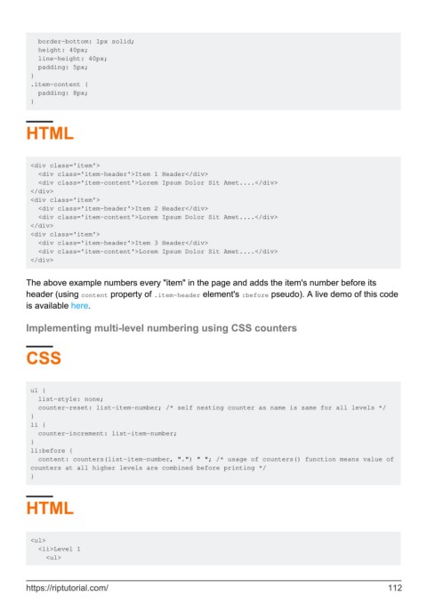 Implementing multi-level numbering using CSS counters