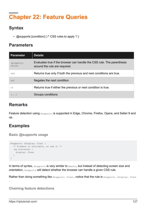 (property: Evaluates true if the browser can handle the CSS rule. The parenthesis