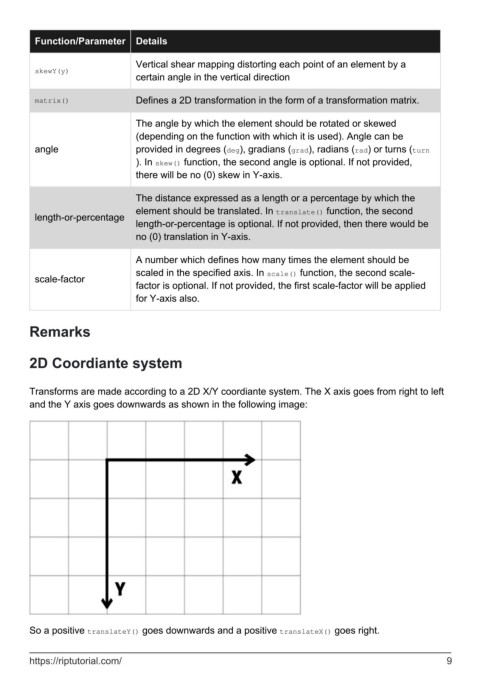Transforms are made according to a 2D X/Y coordiante system. The X axis goes from right to left